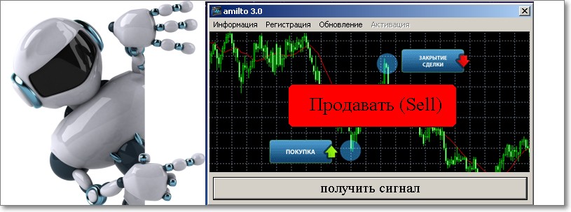 Программа используется как главный направляющий инструмент трейдера для открытия позиции в том или ином направлении, при торговле на бинарных опционах. Программа автоматически проводит полный технический и фундаментальный анализ валютного рынка Forex, а так же анализирует открытые позиции трейдеров, используя доступные и наиболее распространённые Интернет ресурсы всего мира и в результате выдаёт сигнал на открытие позиции в ту или иную сторону с очень высоким % результативности. Программа имеет очень простой и понятный интерфейс, а так же не требует установки и особых настроек. Рабочая пара EUR/USD.